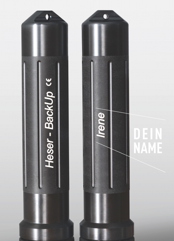 Ihre Lampe kann individuell (z. B. Name) beschriftet werden. Im Aufpreis ist eine Zeile mit max. 20 Buchstaben enthalten. Schriftgröße: wie "Heser-Backup" oder kleiner bei langen Texten.